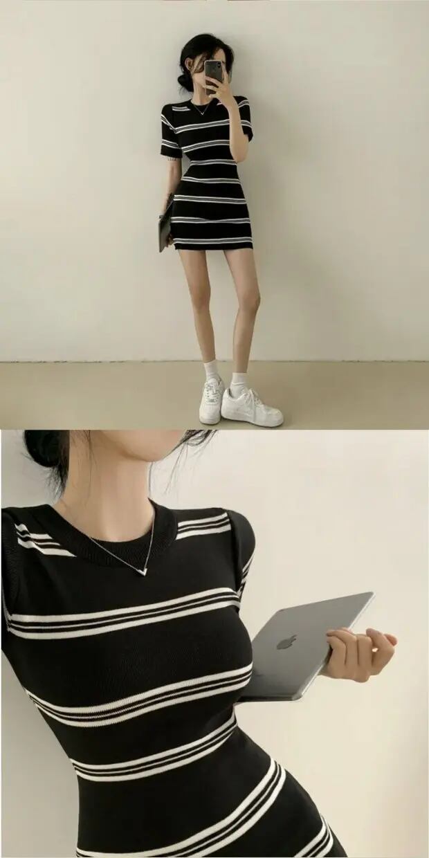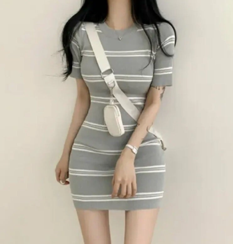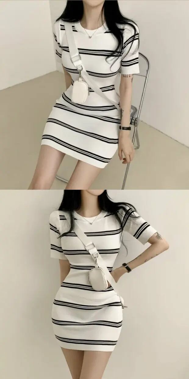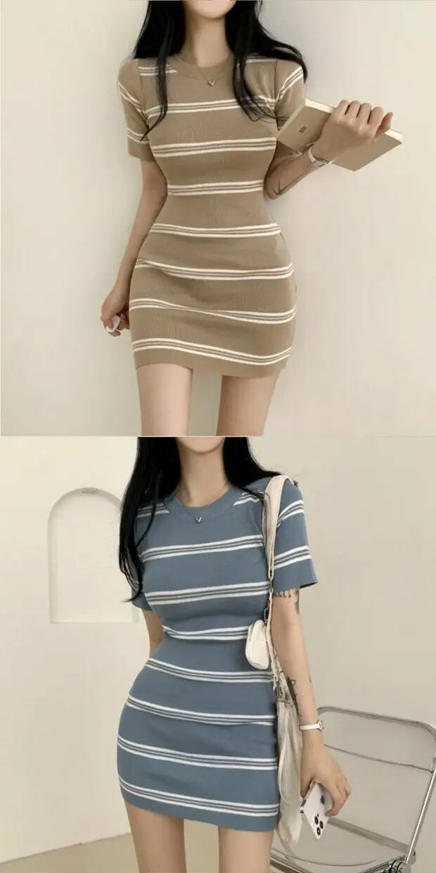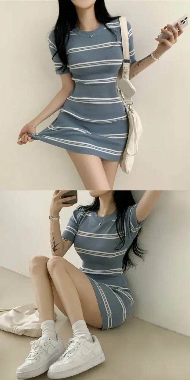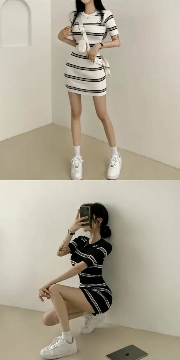 ゴルファー女子風大判ストライプワンピ